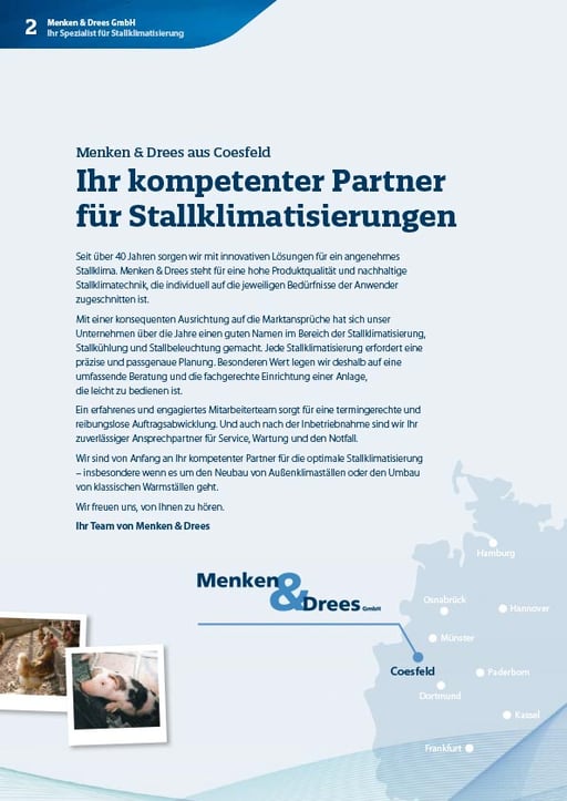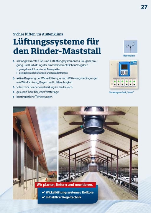 Detaillierte Informationen zu unserer leistungsfähigen Stallklimatechnik finden Sie in unserem Produkt-Katalog 2022/2023. Werfen Sie einen Blick hinein und nehmen Sie bei Fragen gerne Kontakt zu uns auf.